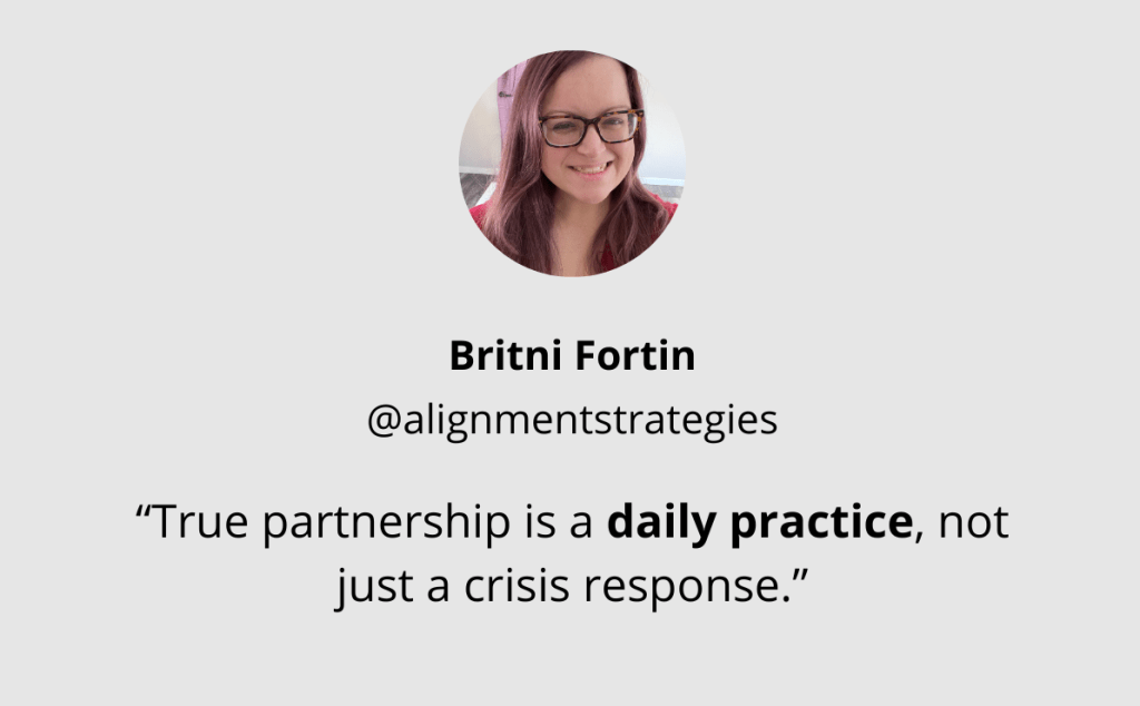 One of these exercises sparked an important conversation within my team. One employee, feeling exposed, shared how uncomfortable it made her when a colleague copied me on emails. She felt it suggested she was doing something wrong. The other employee was surprised by this perception (so was I). “I’m just dealing with the same issue you are and have been reporting it to Britni,” he explained. “I was just keeping her in the loop so she could see that the problem wasn’t limited to my account.”